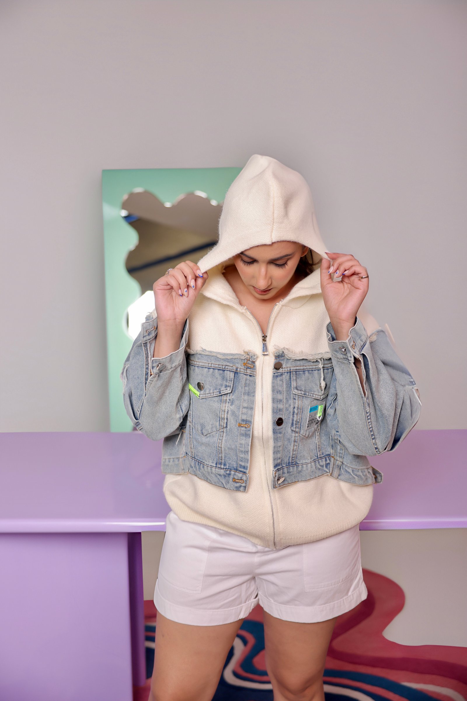 • Denim sleeves for contrast