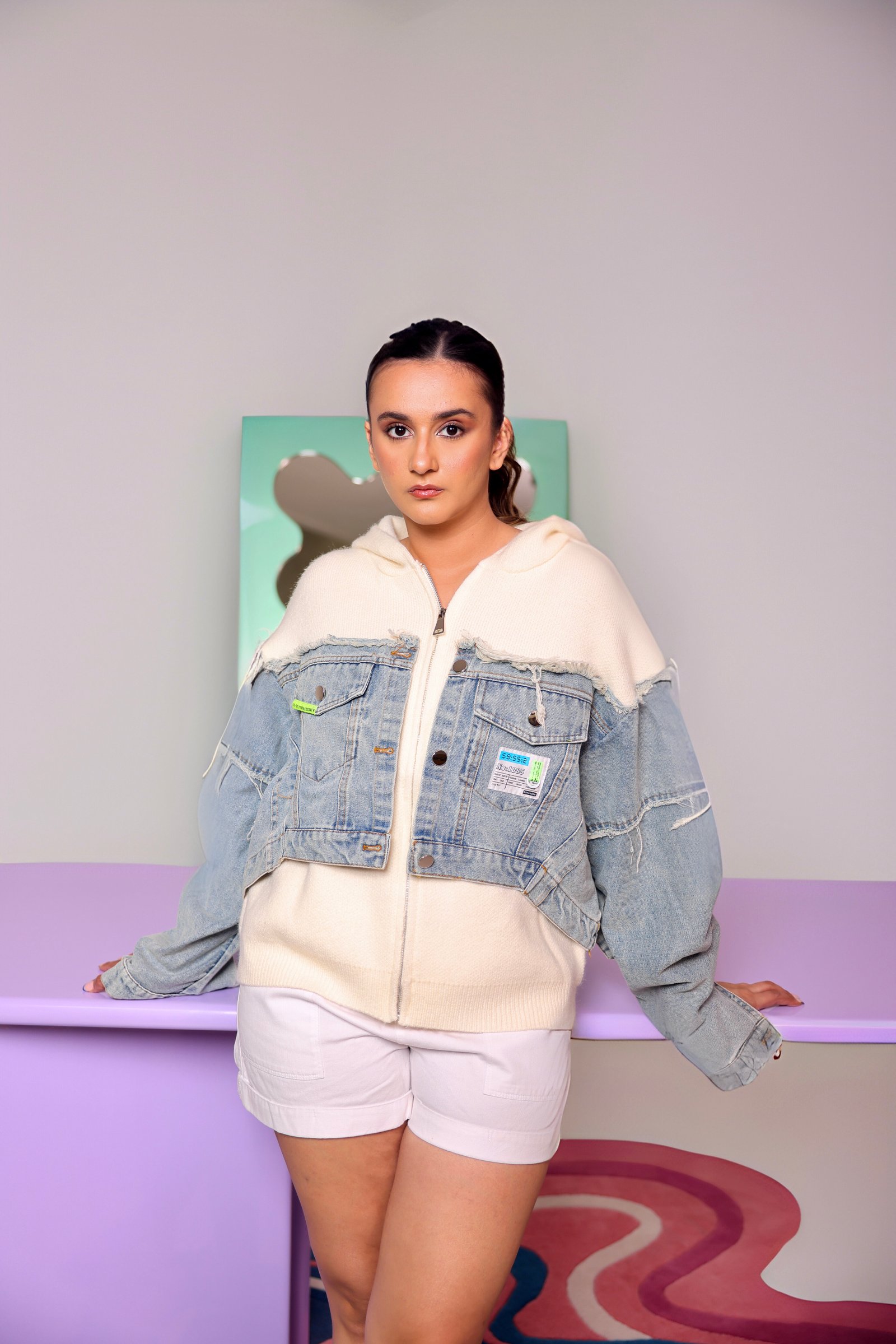 Hybrid Winter Jacket features a bold mix of textures designed to keep you warm while making a statement. Crafted with a soft sweater fabric body and contrasting denim sleeves, this jacket stands out with eye-catching patch details. A versatile winter essential that adds character to any outfit.