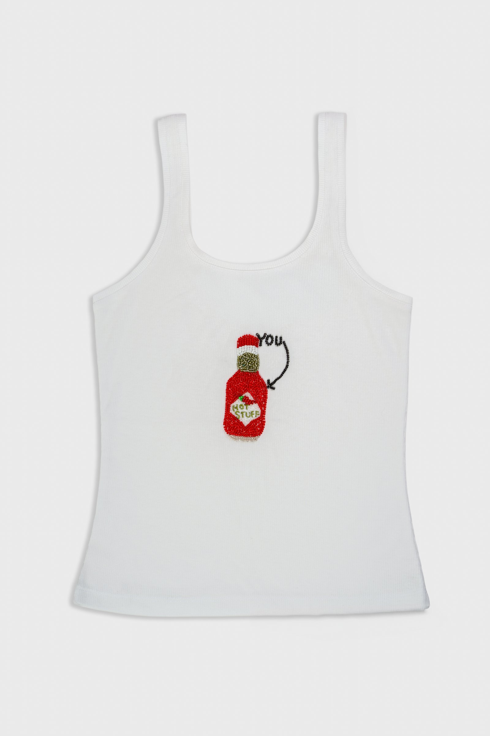 HomeShopTopsTANK TOP TABASCOTANK TOP TABASCO Delivery time: 5-7 days. More InfoSize ChartsSize Chart Guaranteed safe checkout Need Help? Call Us +91 9599433747 Description Description Embellished motif on a cotton ribbed tank top